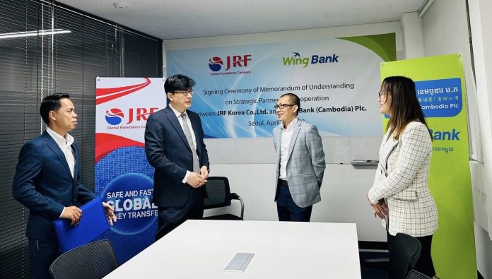 Wing Bank and JRF Korea signed the memorandum of understanding (MoU) establishing their strategic partnership at the trusted international remittance provider’s office in Seoul, the South Korean capital. The MoU was signed by Vattanak Phakdey Chhun, Deputy CEO of Wing Bank, and Philip (Seong-Hwan) Park, COO of JRF Korea, and witnessed by a number of distinguished guests in attendance at the ceremony.