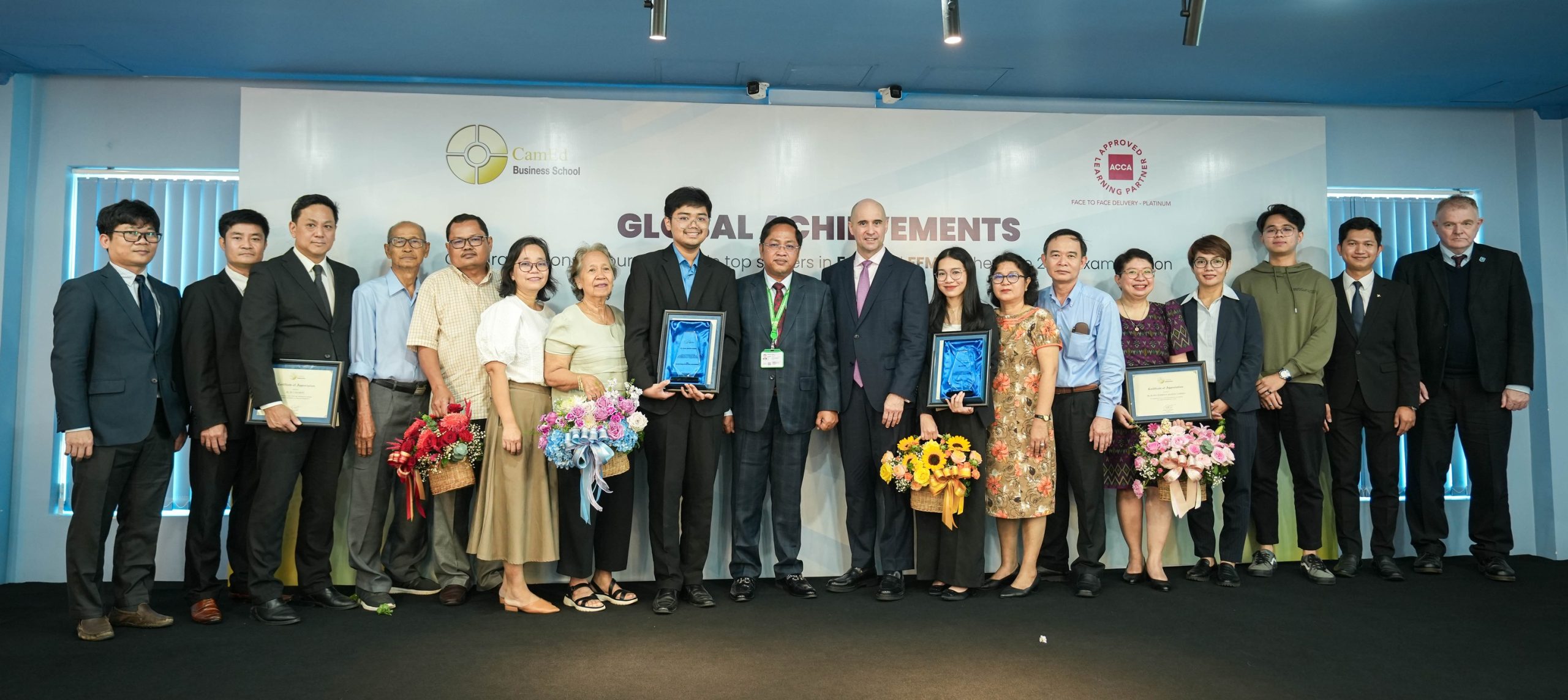 In a recent award ceremony that celebrated excellence in accounting, two standout students from CamEd Business School, Ms. Liv Sin and Mr. Suon Sovann Vichea, achieved the worldwide top scores in examinations conducted by the Association of Chartered Certified Accountants. This remarkable accomplishment highlights the maturing accounting industry in Cambodia, and symbolizing the development and potential within the local sector.