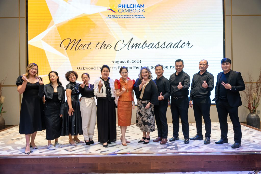 The Philippine Chamber of Commerce & Business Association in Cambodia (PhilCham Cambodia) successfully hosted the “Mabuhay Night: Meet the Ambassador” event on 9 August 2024, at the Grand Ballroom of Oakwood Premier Phnom Penh. This event provided an opportunity for the Filipino community and Cambodian business leaders to meet and interact with the newly appointed Philippine Ambassador to Cambodia, H.E. Flerida Ann Camille P. Mayo. The highly anticipated gathering brought together business leaders, diplomats, and members of the Filipino and Cambodian communities for a night of networking, cultural exchange, and insightful dialogue about the future of Philippines-Cambodia relations.