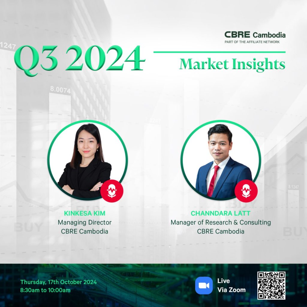 - We’ll be diving deep into the latest trends and opportunities in Cambodia’s real estate market for Q3 2024. It’s a must-attend for anyone keeping an eye on the property sector! Register now to secure your spot: Zoom Registration Link.