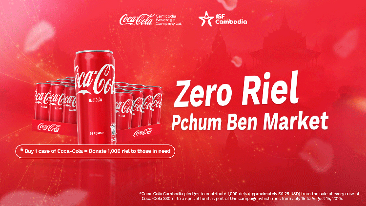From July 15 to August 15, the company will donate 1,000 riel (approximately $0.25) from every case (a package containing 24 individual cans or bottles of the beverage) of Coca-Cola 330ml sold toward a community fund that supports underprivileged families during Cambodia’s key religious holiday, Pchum Ben. The initiative culminates in a “Zero-Riel Pchum Ben Market” to be held on September 9, where selected low-income families will be able to shop for food and essentials free of charge.