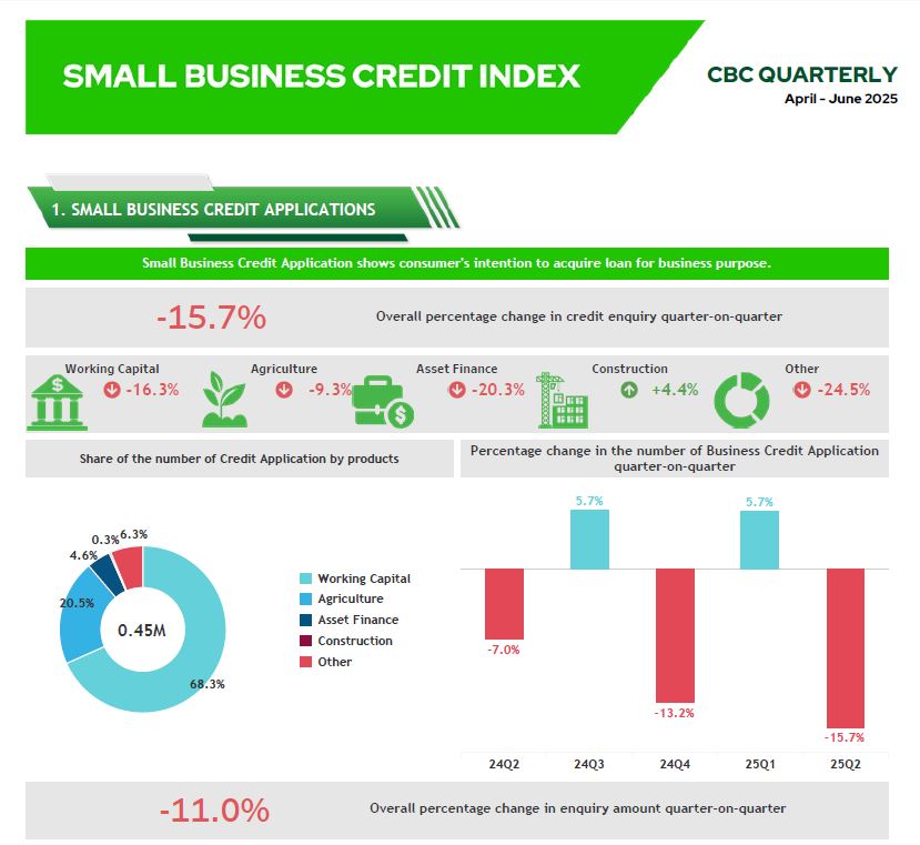 Cambodia’s small business lending market showed signs of strain in the second quarter of 2025, with loan applications and overall balances softening while repayment risks rose sharply, according to the latest Small Business Credit Index from Credit Bureau Cambodia (CBC).