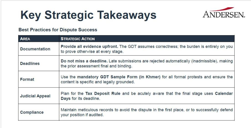 Learn More: Businesses seeking to understand the new audit and appeal framework or prepare for potential tax reviews can contact Andersen Cambodia for advisory support and in-depth guidance at kh.andersen.com