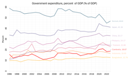Money comes from taxes. In 2024, the General Department of Taxation (GDT) collected revenue equal to about 14.57% of its GDP. While the government aims to increase tax revenue, the current tax structure remains narrow and heavily reliant on indirect taxes, particularly value-added tax (VAT), import duties, and corporate income tax. There is still room for Cambodia to increase tax collection.