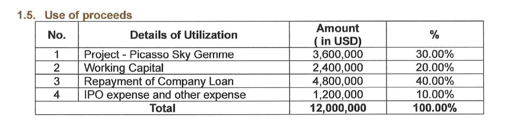 - Projected book value after IPO: USD 17 million (up from USD 5 million)