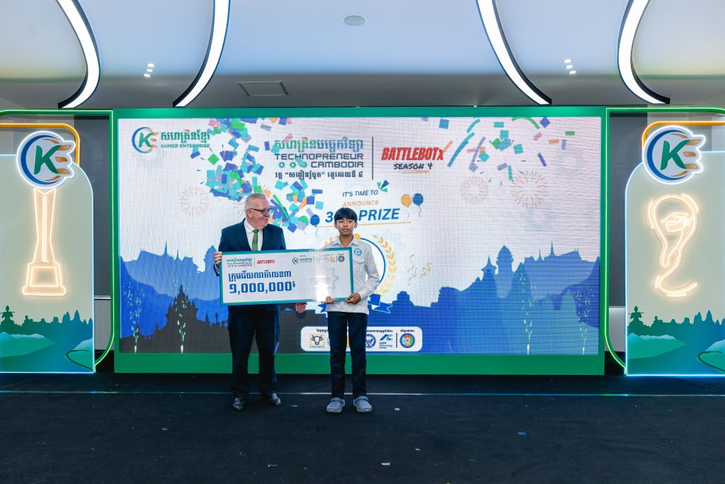 Awards in the Technopreneur, Program “Battlebotx” Season 4, organized by Khmer Enterprise to help foster entrepreneurial mindset and innovation in the field of technology.”