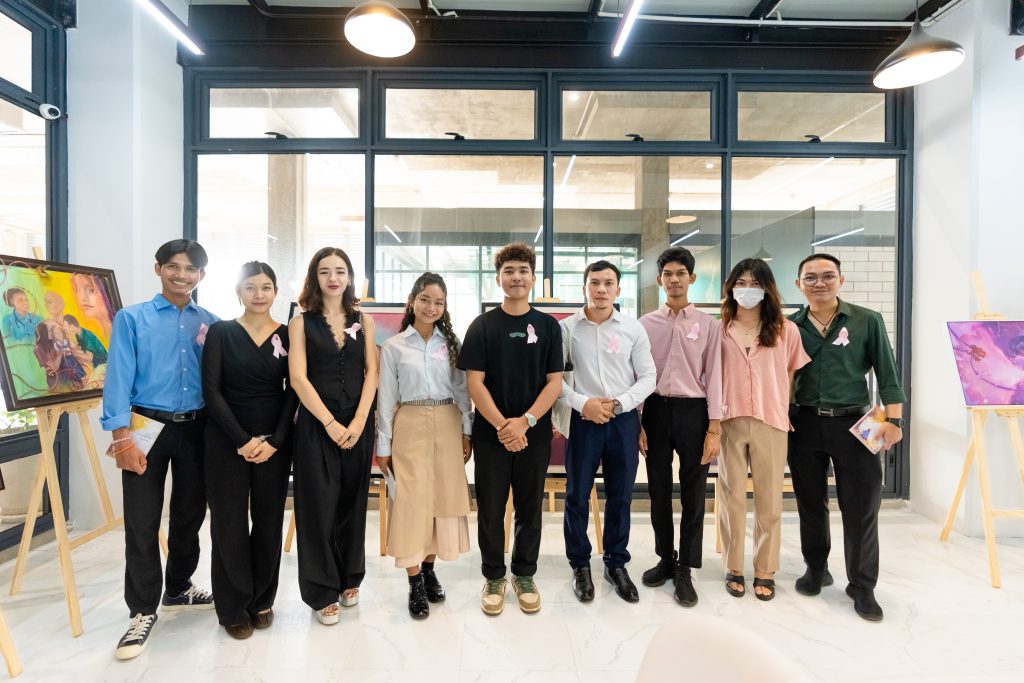 As part of the awareness initiative, the event featured an art exhibition titled “Together, We Care.” Presented at Connexion’s Ground Floor in Komnu Lounge. The exhibition brought together students from the Royal University of Fine Arts (RUFA) and an international photographer, Miguel Jeronimo, whose works shed light on the emotional and human side of the breast cancer journey.