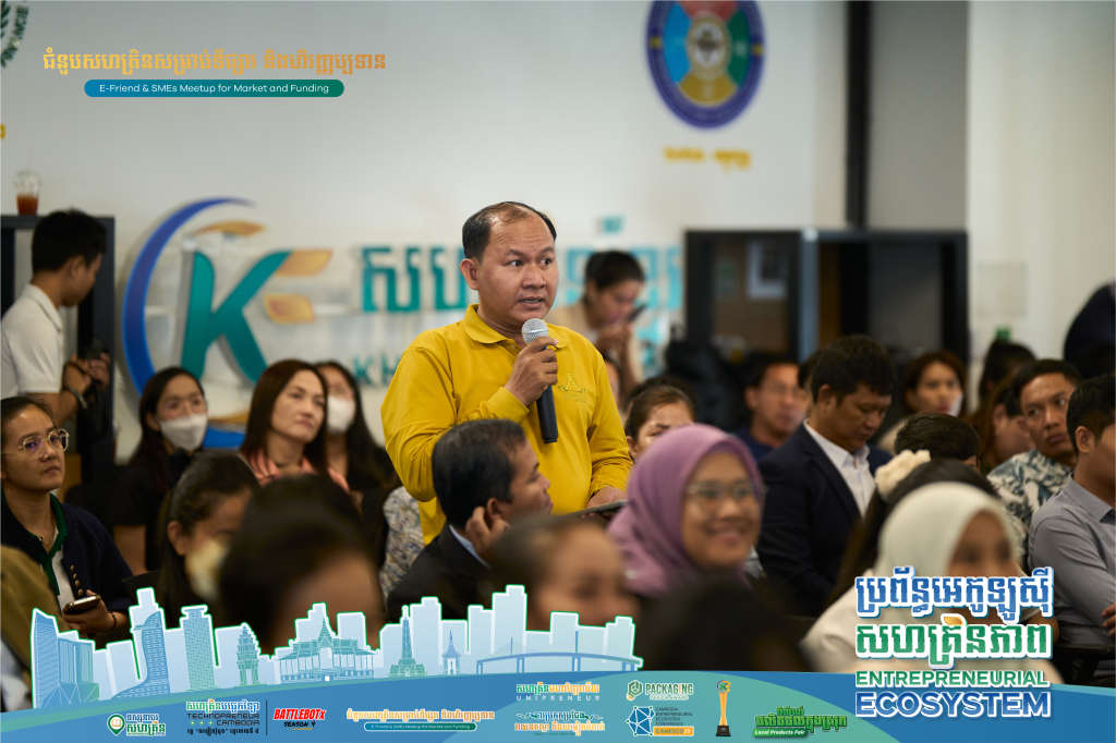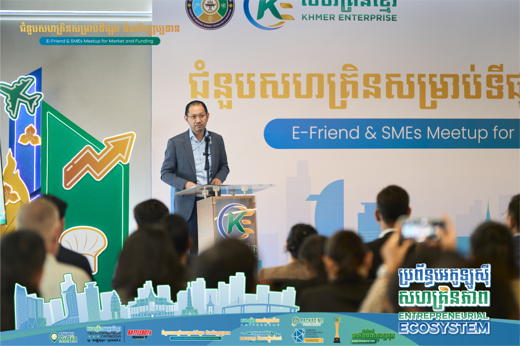 The E-Friend and SMEs Meetup for Market and Funding is part of the Entrepreneurial Ecosystem Campaign 2025, a series of flagship initiatives led by Khmer Enterprise. The Campaign brings together multiple programs that run in parallel — from national business ideation pitching, Startup and SME competitions to forums, workshops, and award ceremonies where entrepreneurs can access knowledge, networks, and opportunities that support their growth and sustainability.