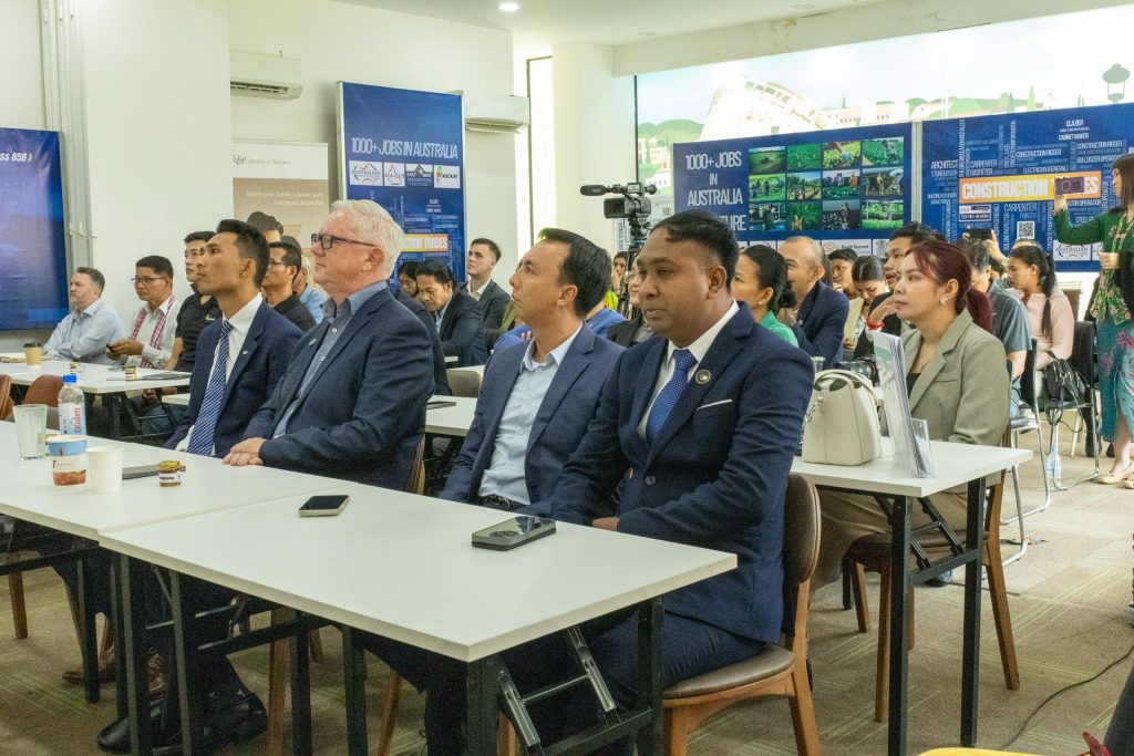Opening the workshop, Rasmey Sokmongkol (Raz), Managing Director of AGSMS, ATEC, and AIA QLD, emphasized the importance of understanding visa regulations and the employment opportunities available under Australia’s evolving skilled migration framework.