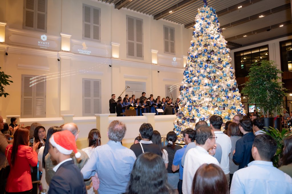 The installation was officially unveiled during a Christmas Tree Lighting Ceremony held on December 4, 2025. Hosted jointly by Hyatt Regency Phnom Penh and Singapore Airlines, the event marked the start of the hotel’s festive programme and brought together invited guests from across the business, diplomatic, and hospitality communities. The evening also featured a performance by the Phnom Penh Choral Ensemble, blending international branding with local cultural elements.