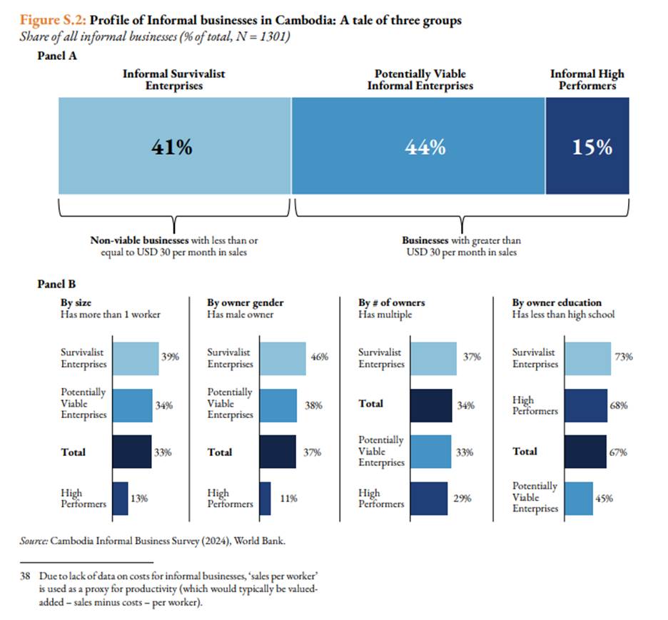 Cambodia’s informal economy is helping households navigate the immediate effects of economic shocks, acting as the country’s largest buffer during a period of unusual volatility. But the report concludes that without reforms to boost productivity, connect firms to formal markets, and support MSMEs, informality will continue to limit Cambodia’s long-term resilience.