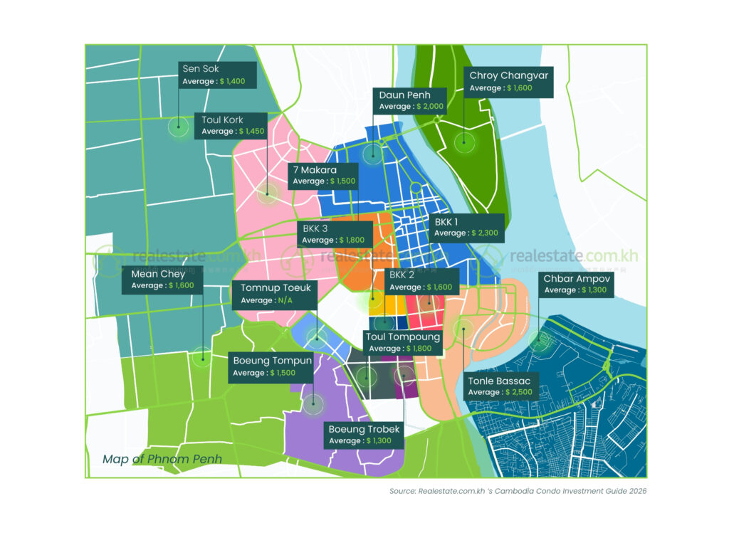 Phnom Penh continues to dominate Cambodia’s condominium market, accounting for over 70% of total purchases, with BKK1 remaining the most sought-after district for both investors and end-users.