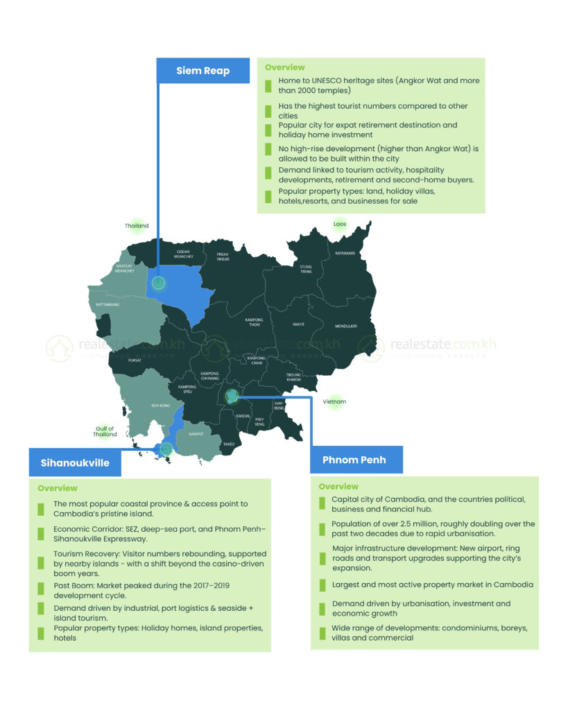 At the same time, emerging destinations such as Sihanoukville and Siem Reap are gaining traction.